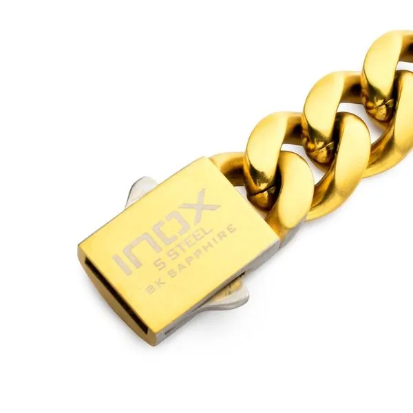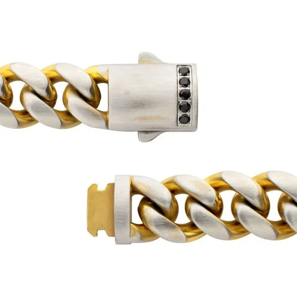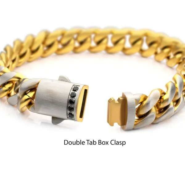 (503) 472-6812GEMINI SOLSTICE: 12mm 18Kt Gold IP Matte Steel Cuban Chain with Black Sapphire Clasp Reversible Bracelet