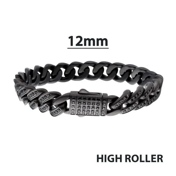 MAMBA -HIGH ROLLER: 12mm Gun Metal IP Steel Miami Cuban with Black Spinel Chain Bracelet Image 4 Timmreck & McNicol Jewelers McMinnville, OR