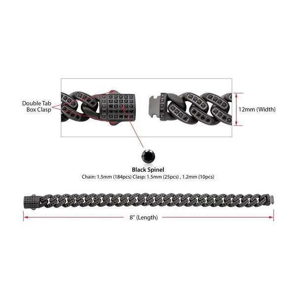 MAMBA -HIGH ROLLER: 12mm Gun Metal IP Steel Miami Cuban with Black Spinel Chain Bracelet Image 3 Timmreck & McNicol Jewelers McMinnville, OR