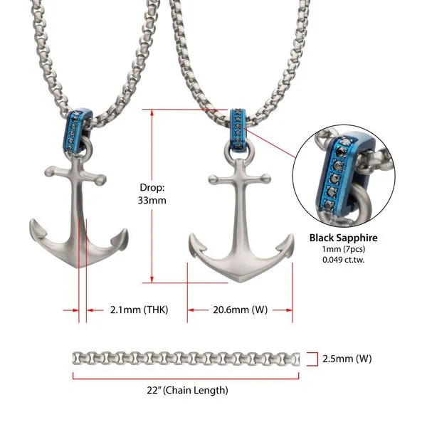 3. OCEAN STEED: Matte Finish Steel Blue Bail with Black Sapphire Anchor Pendant