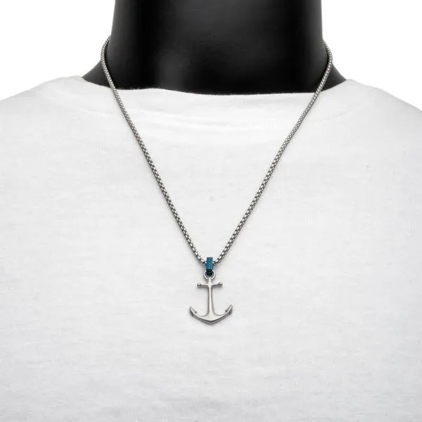 OCEAN STEED: Matte Finish Steel Blue Bail with Black Sapphire Anchor Pendant Image 2 Timmreck & McNicol Jewelers McMinnville, OR